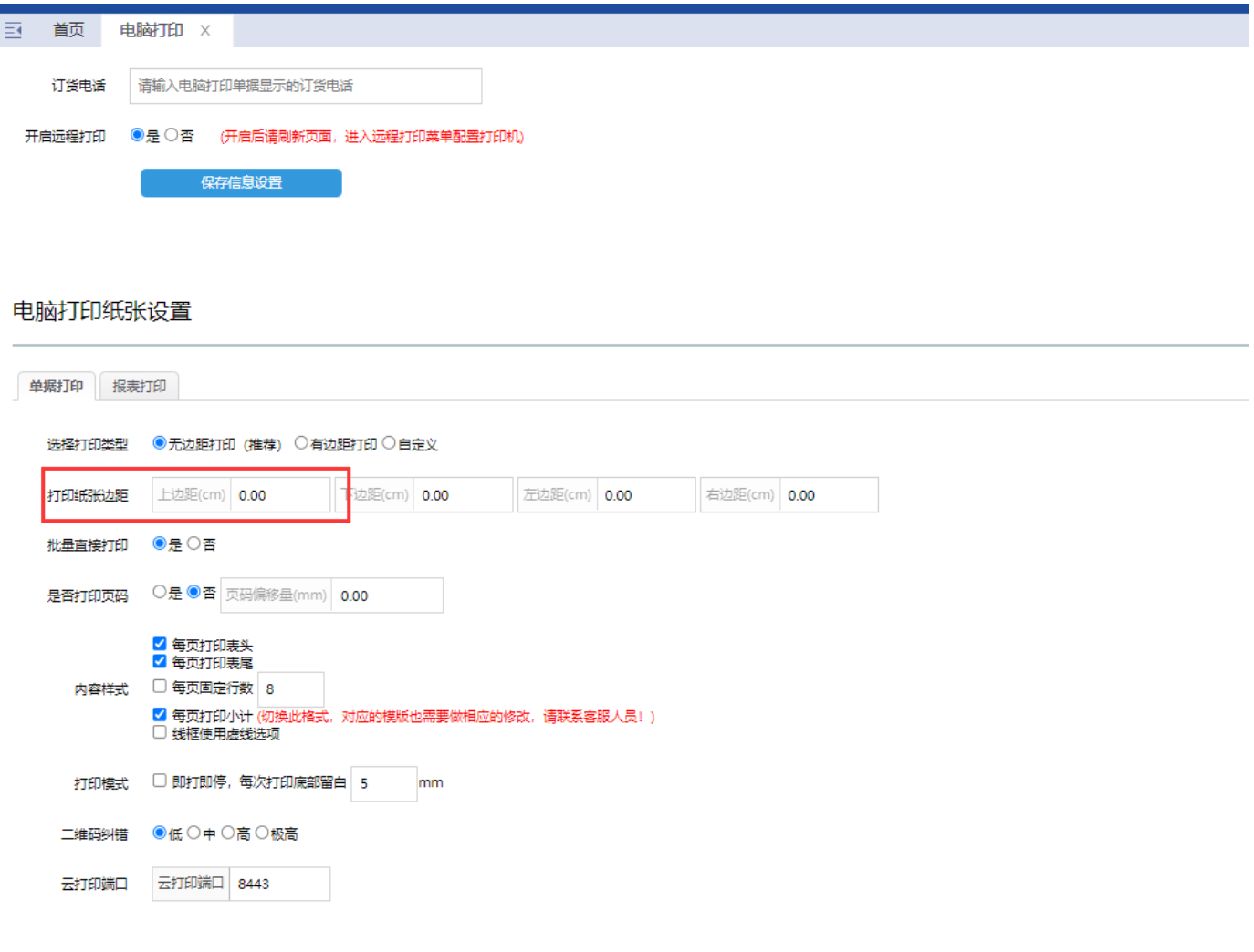 设置上边距,建议输入0.2-0.5(cm)微调