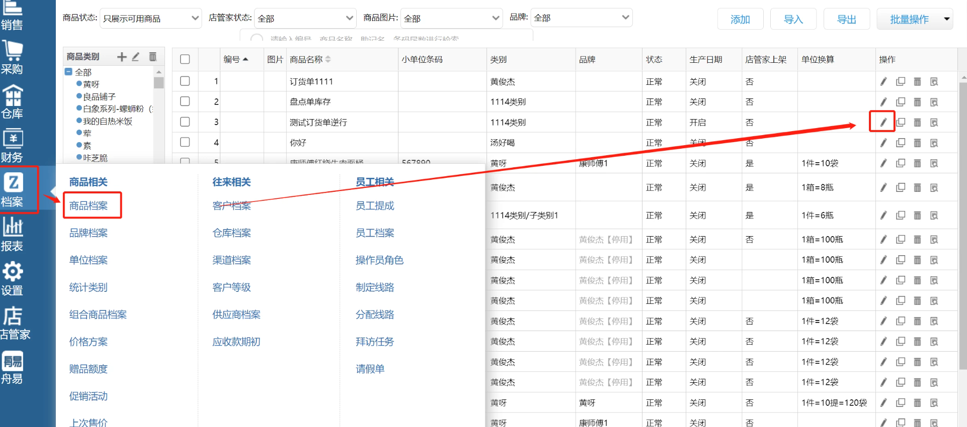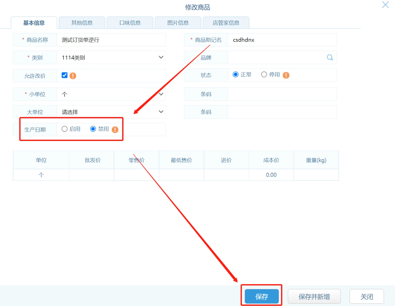 一、关闭单个商品生产日期:电脑端--档案--商品档案--点击“小笔”图标,禁用生产日期。