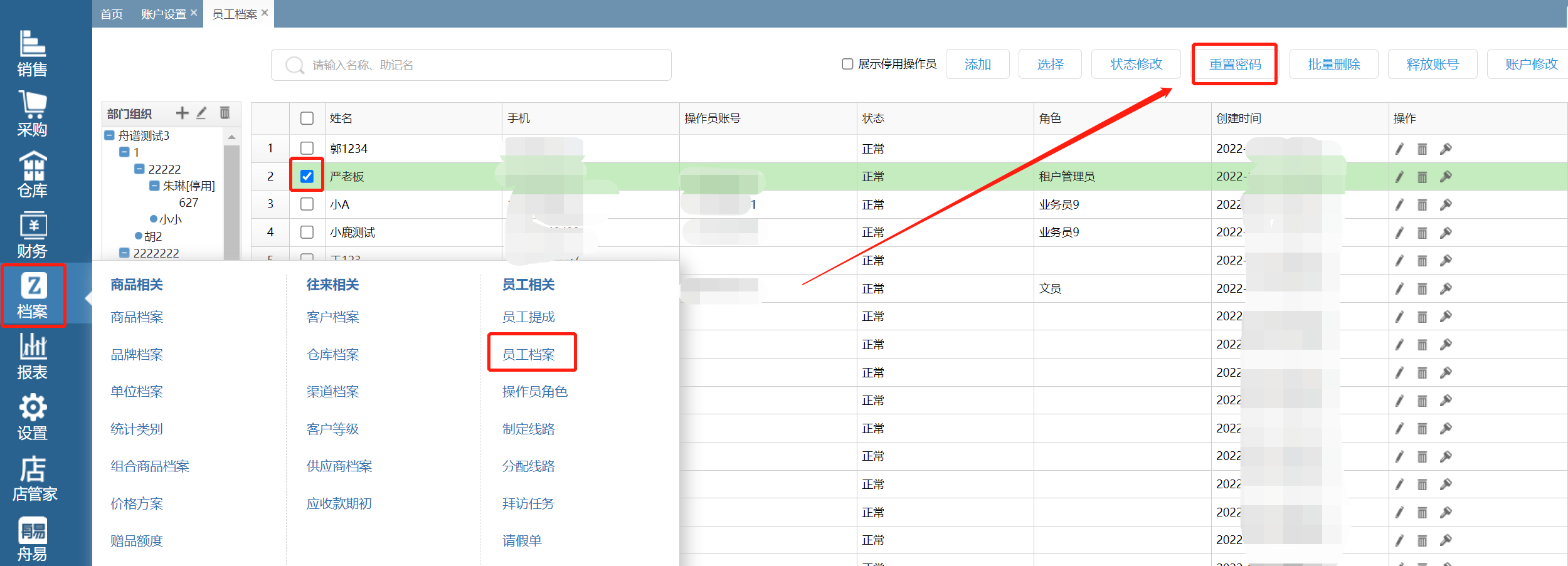 电脑端档案--员工档案--勾选员工--重置密码,只有在这里重置密码APP才会强制退出。