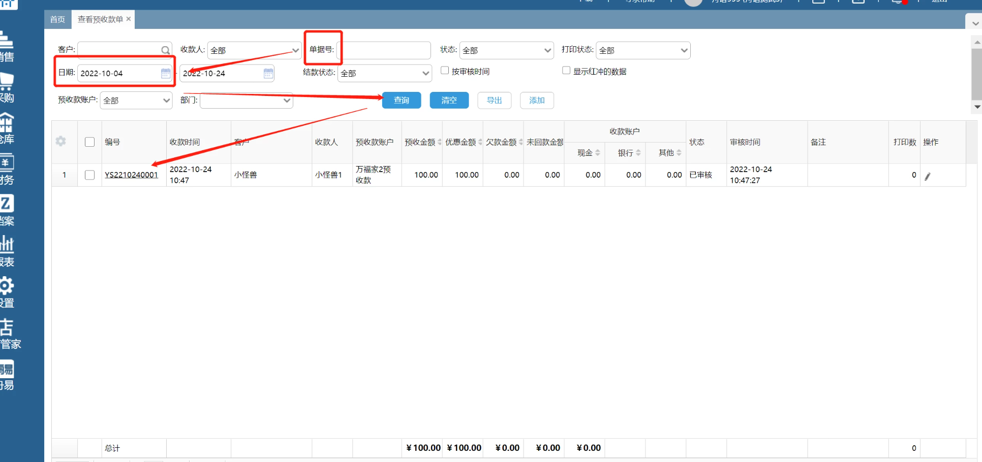 第二步:筛选日期等条件,找到需要红冲的单据,点击单号进入。