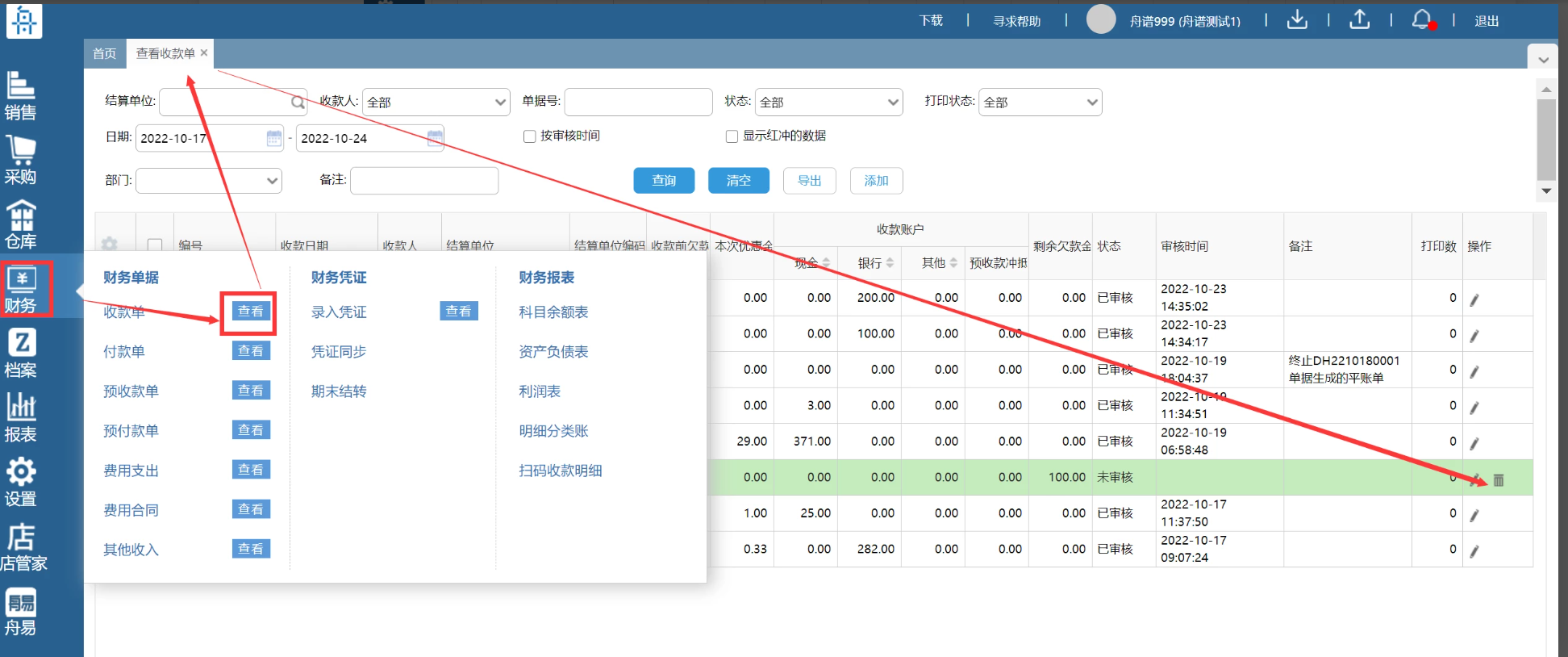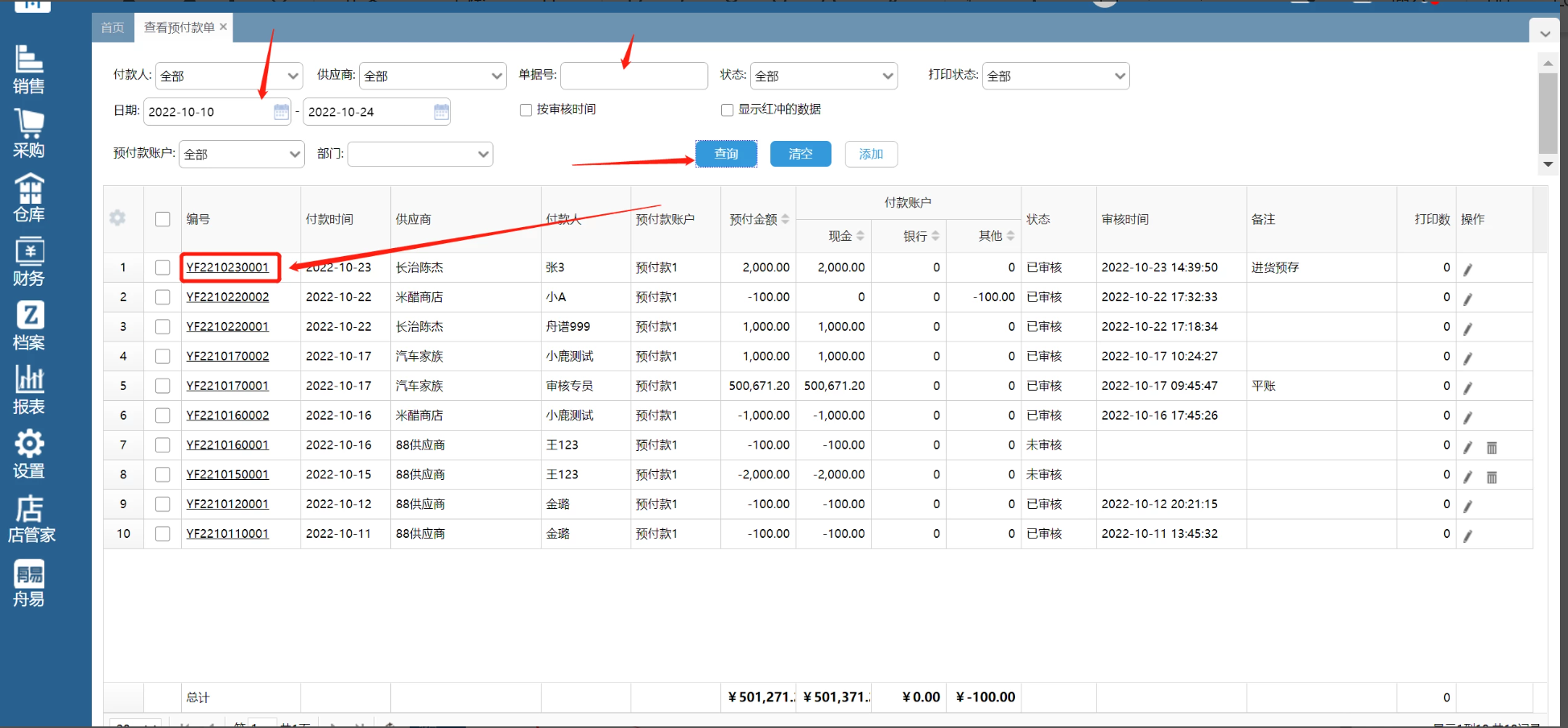 (1)付款单/预收款单/预付款单已审核都可以通过查看,找到单据进入后红冲。