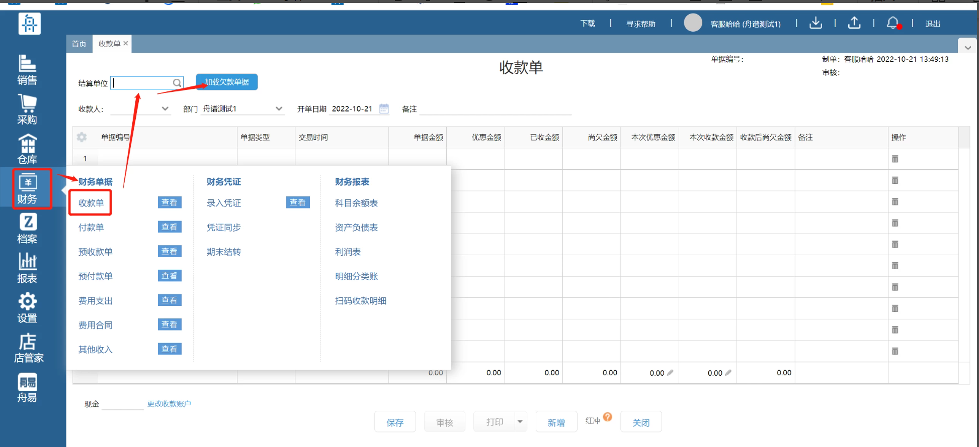 第一步:财务-收款单-选择需要收款的客户