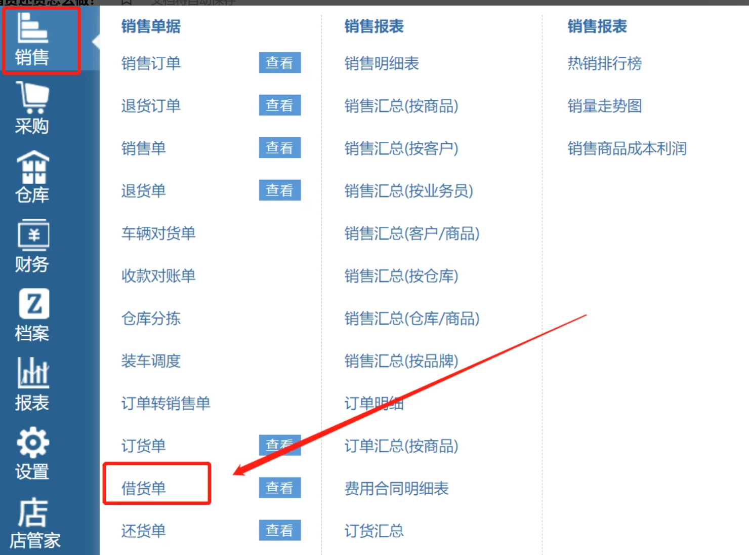 一:借货 电脑端销售-借货单;手机端全部--单据类--借货单。