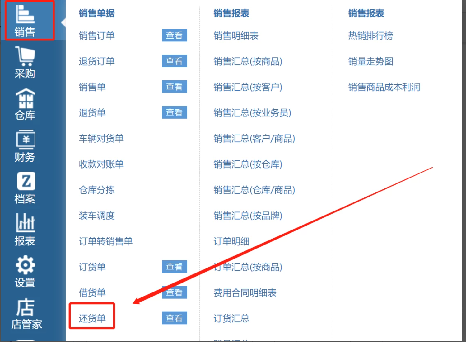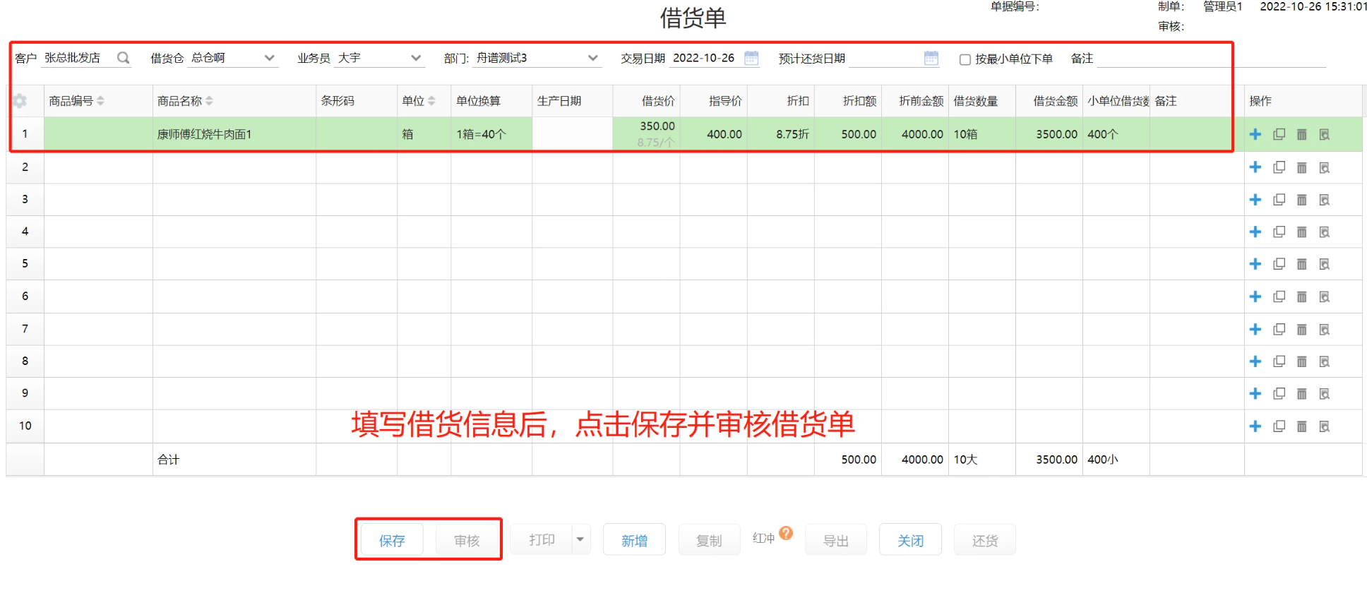 注意:仅支持同品借还,如需借A商品,还B商品,请通过销售单一销一退的方式操作。