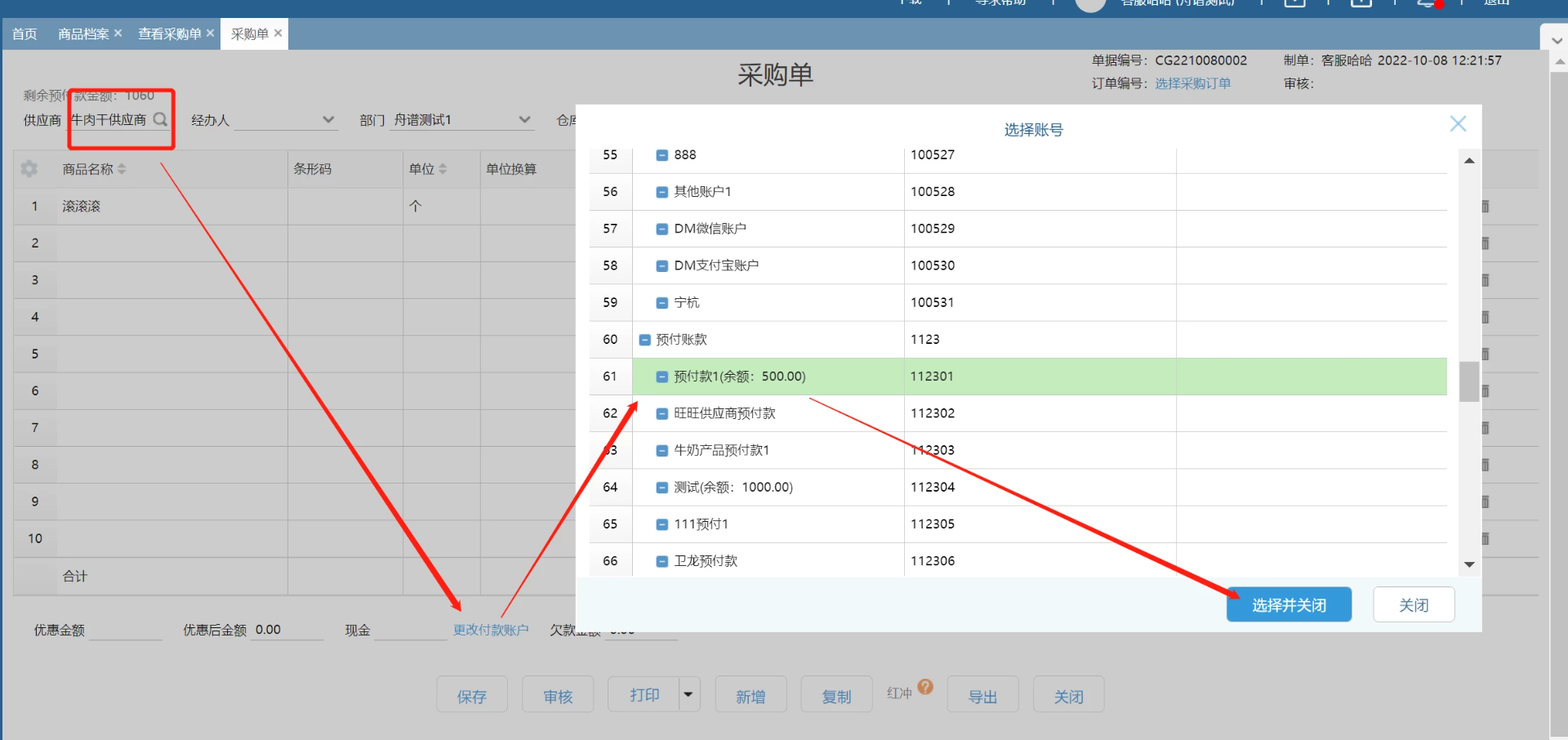我前面预付厂家货款了,现已来货,做了釆购单,怎么还体现预付货款的金额