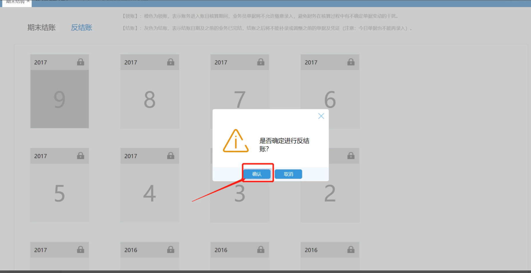 第二步:选择月份,点击确定即可。(不支持跨月反结转,只能按月反结转。)